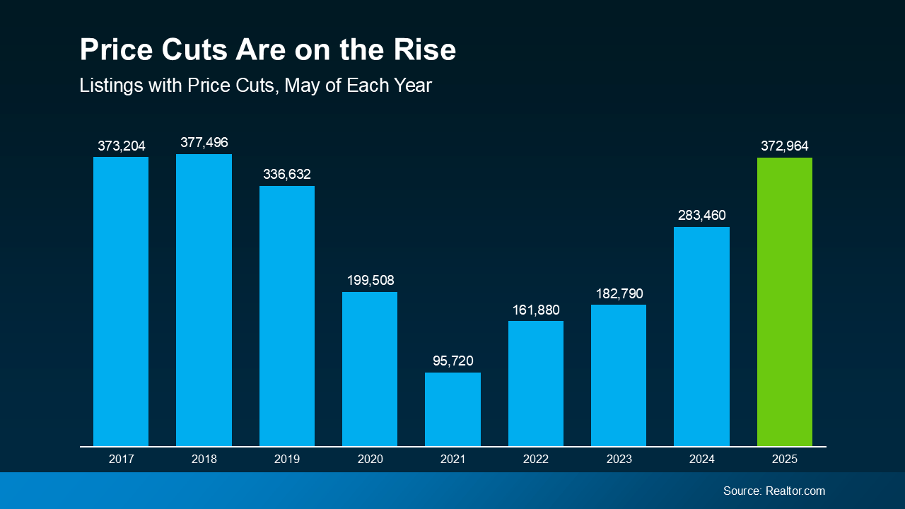 Since homes are taking more time to sell, some sellers are choosing to lower their asking prices to draw buyers back in or speed up the process. And that's to-be-expected. According to Realtor.com, 19.1% of listings had a price cut this May (see graph below):