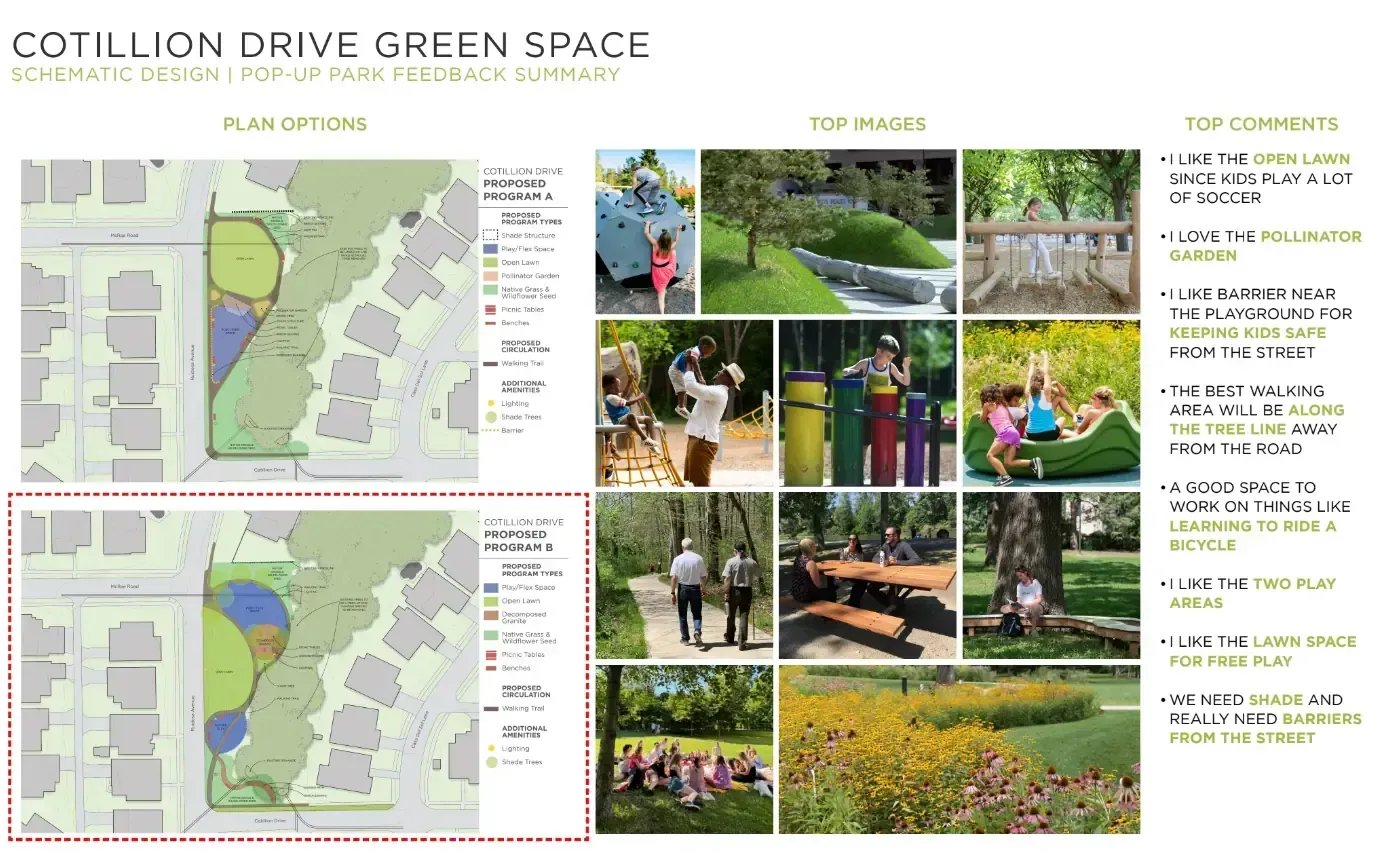 Community feedback on the Cotillion Drive Green Space Courtesy Trust for Public Land Texas